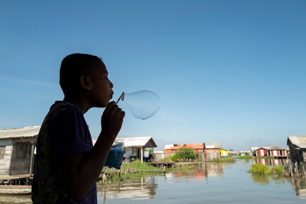 Bajo el cielo luminoso de la costa norte de Colombia, en la Ciénaga Grande de Santa Marta, existe un lugar que parece haberse escapado de las páginas de un cuento de Gabriel García Márquez. se llama Nueva Venecia, y es un pueblo palafito que se alza en medio de las aguas tranquilas de la ciénaga. Las casas de Nueva Venecia se erigen sobre pilotes de madera, desafiando la gravedad mientras se mecen suavemente con las brisas que recorren la ciénaga. Sus colores vivos contrastan con el azul profundo del agua que las rodea, y cada estructura parece haber sido sacada directamente de un sueño. A pesar de la ausencia de la tecnología moderna, la gente de Nueva Venecia irradia alegría y paz, sus sonrisas son un reflejo del resplandor del sol sobre las aguas. Aquí, el tiempo parece detenerse, y las preocupaciones del mundo exterior se desvanecen como el humo de un cigarro. En Nueva Venecia, las familias se entrelazan como las raíces de los mangles que emergen del agua. Los pescadores salen al amanecer en sus pequeñas embarcaciones, persiguiendo los secretos que las aguas de la ciénaga guardan celosamente. El sustento de la comunidad depende de la pesca.